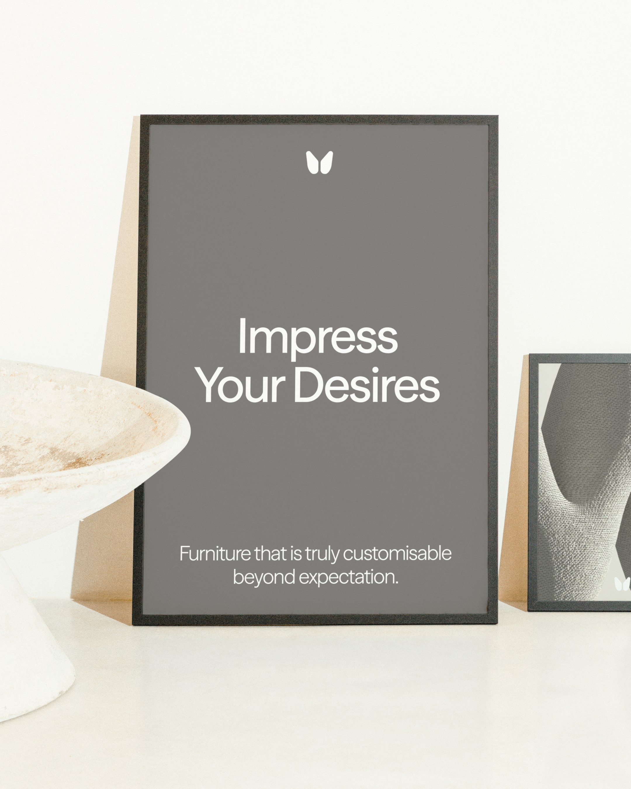 Messaging centred on personal expression and limitless customisation. Lines such as “Impress your desire” and “Fit. Flex. Feel how you want” communicate furniture shaped around the individual, designed to exceed expectations rather than meet them.